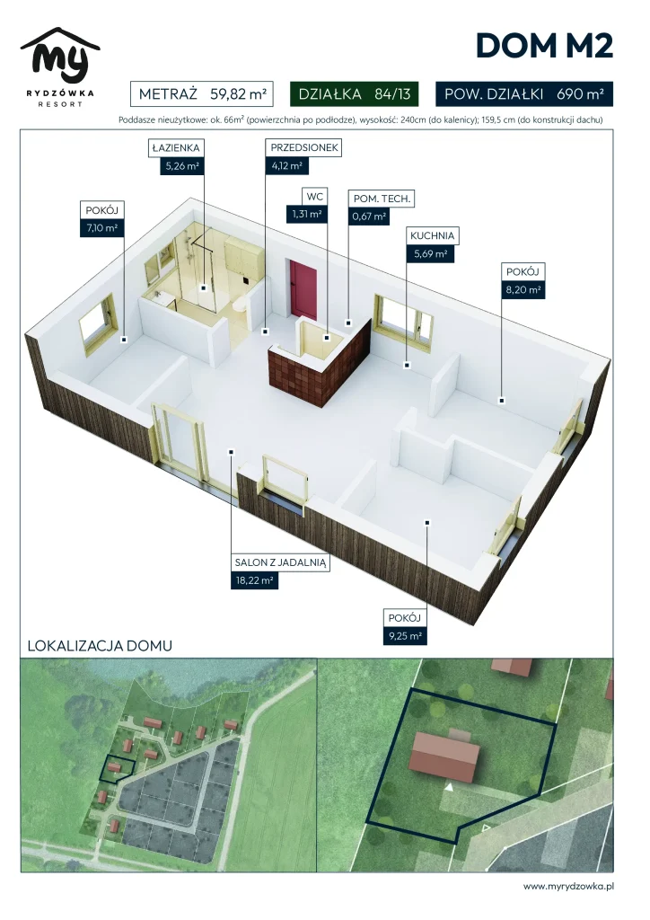Położenie osady My Rydzówka sprawia, że możesz korzystać z uroków natury i atrakcji turystycznych regionu. Dom M2 to świetny wybór zarówno dla osób marzących o własnym domu w otoczeniu zieleni, jak i dla inwestorów planujących wynajem krótkoterminowy w popularnej lokalizacji na Mazurach.
